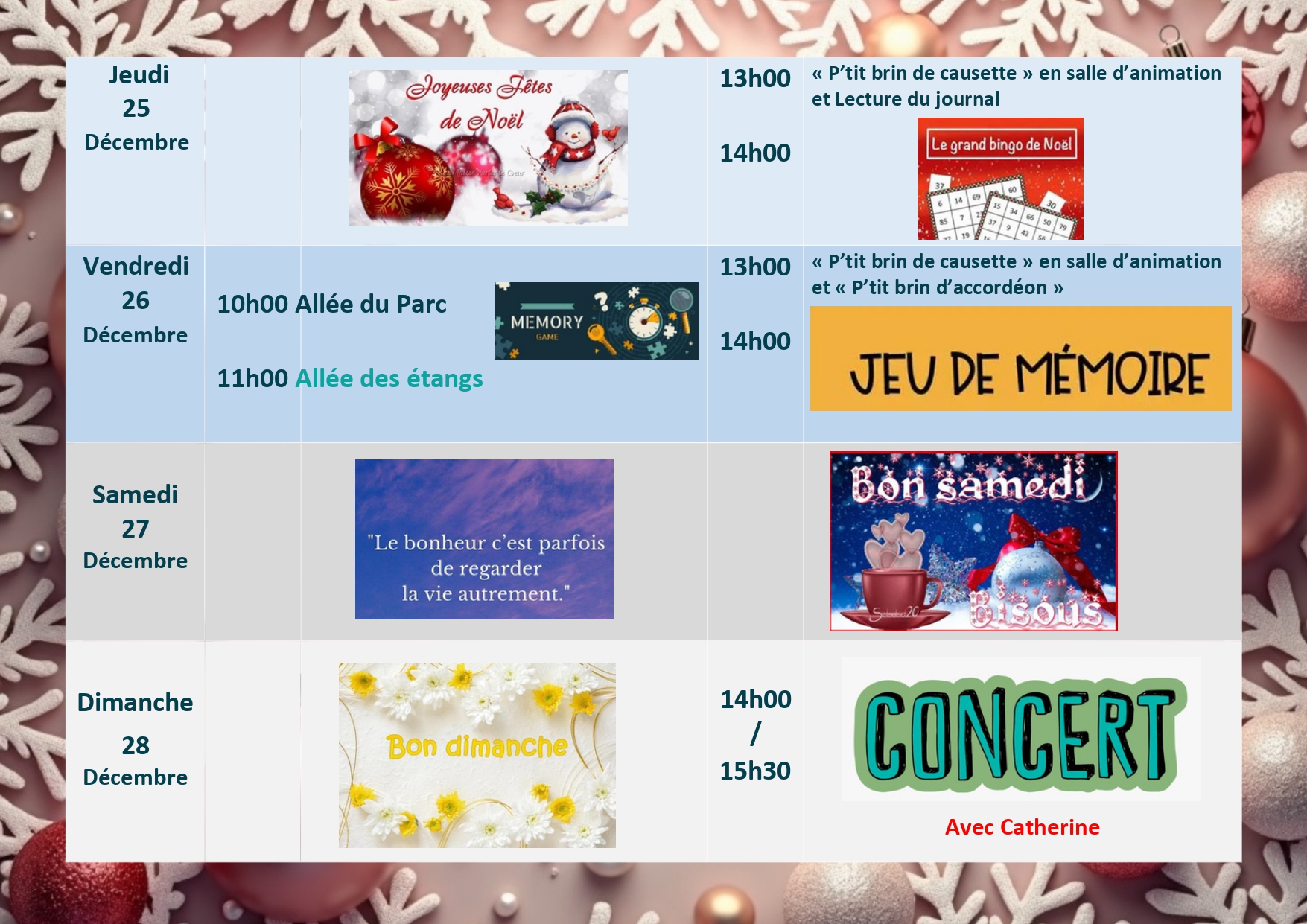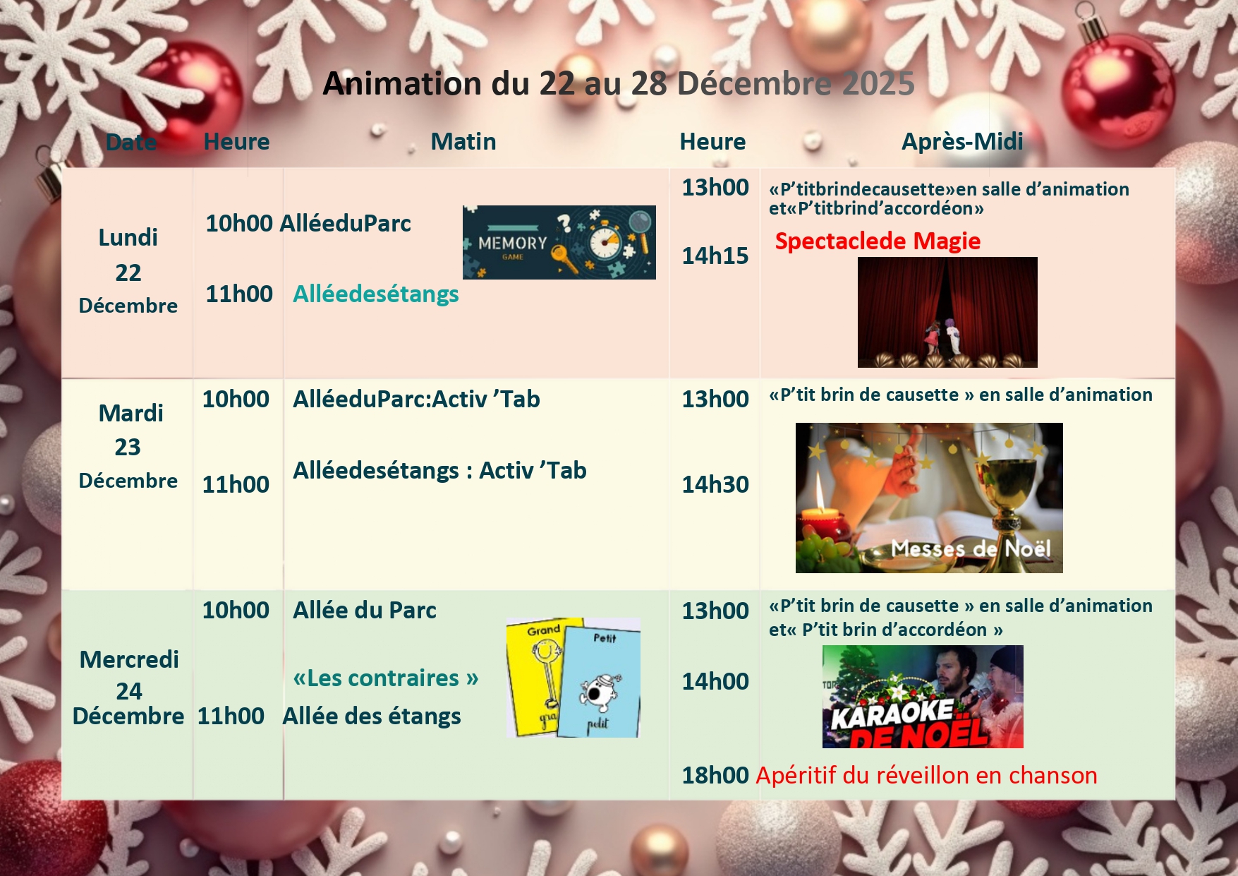 Menu / Animation du 22 au 28 Décembre