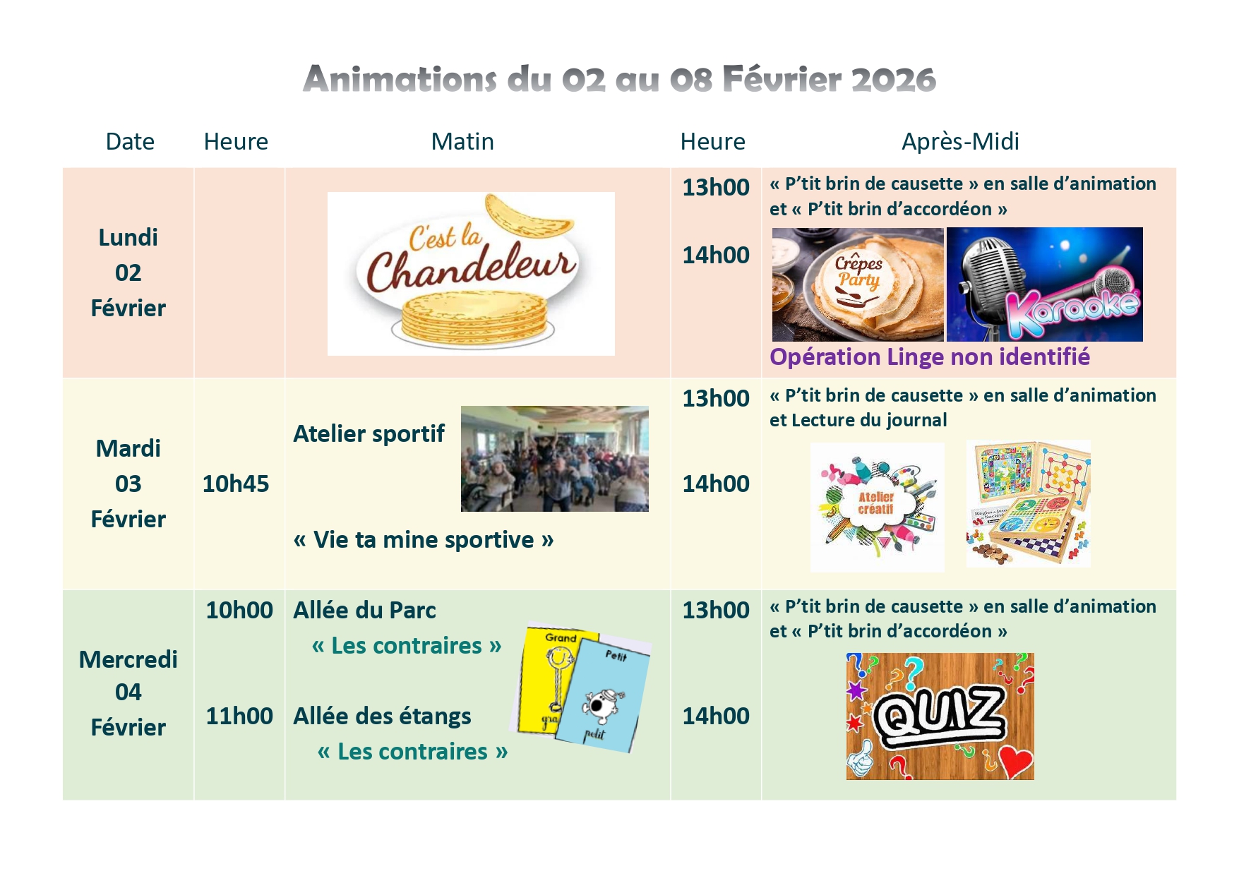 Menu / Animation du 2 Fevrier au 8 Fevrier