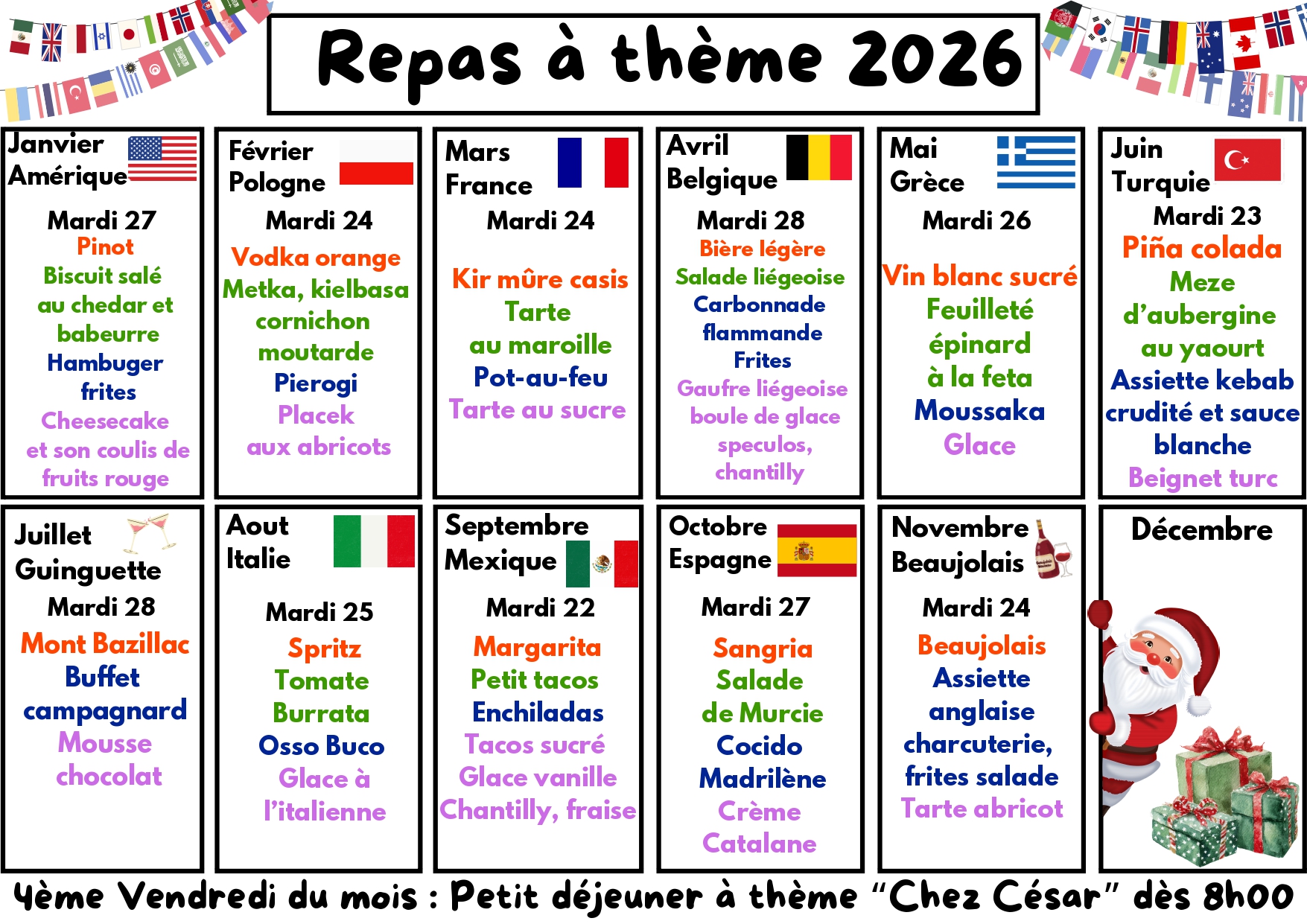 Repas à thème et petit déjeuner