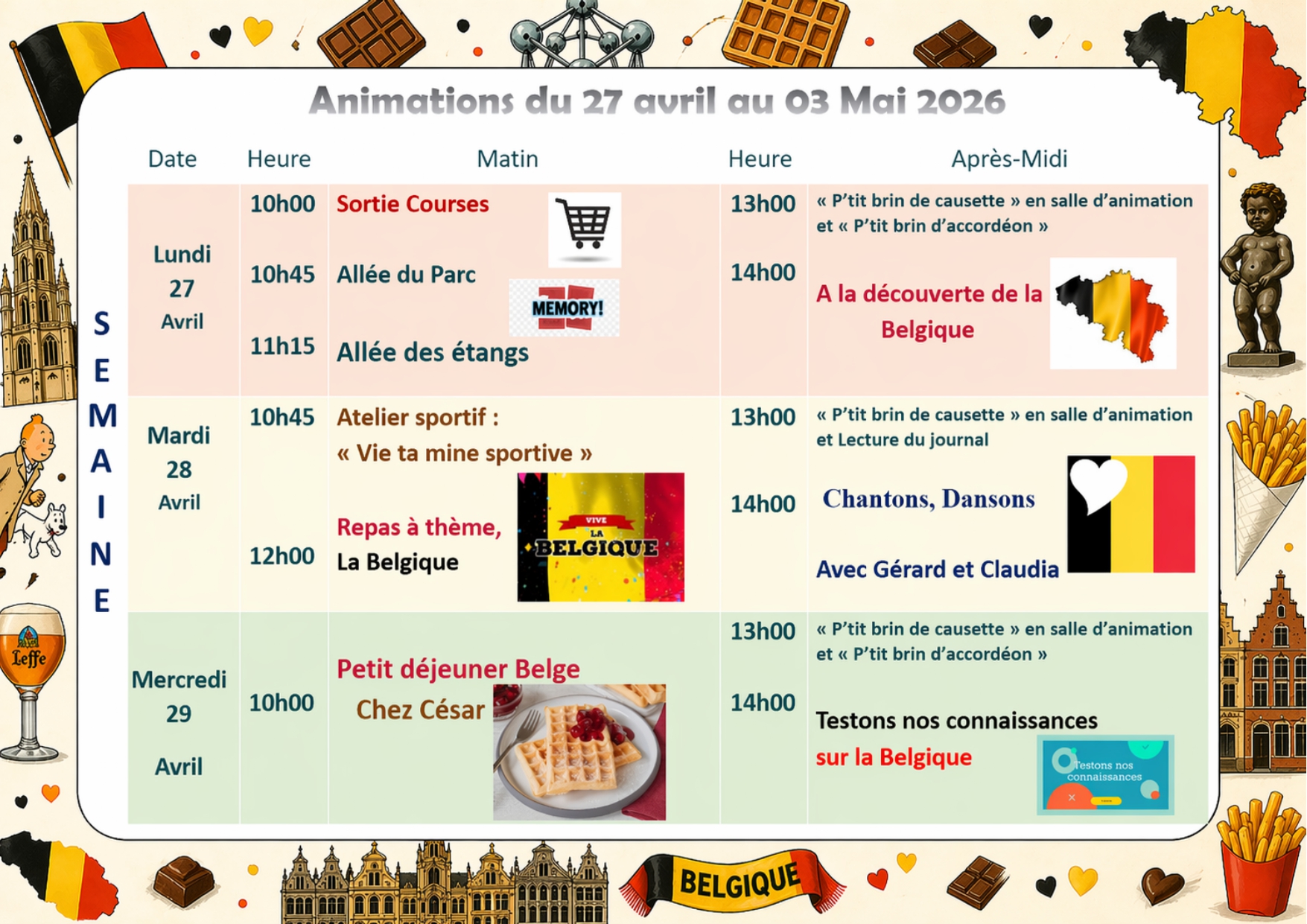 Menu/ Animation du 27 Avril au 3 Mai 2026